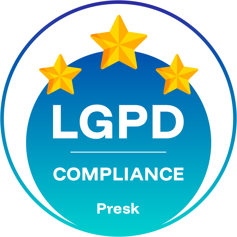 100% seguros. A Presk utiliza criptografia avançada e segue todas as normas da LGPD, garantindo proteção completa das informações de profissionais e pacientes.